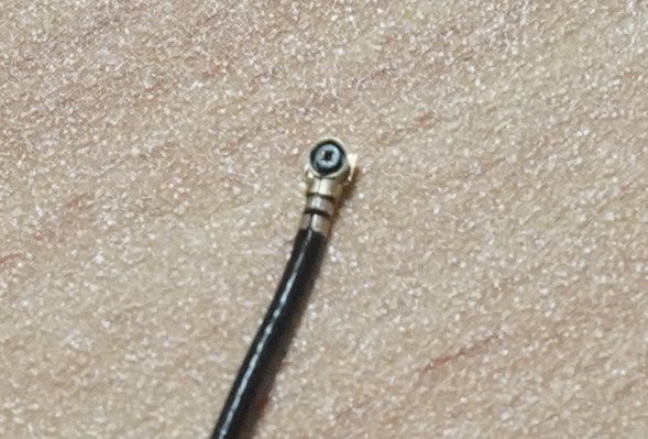 特に、モジュールキットに接続するためにはMHF4という規格が大事そうです。形状は下の写真のようになっていて、中央部分が少しくぼんでいます。ここにモジュール側の対応する部分をはめ込むという形になります。